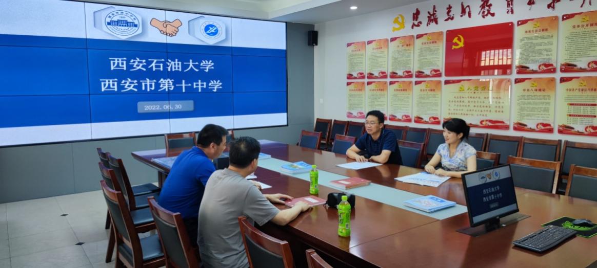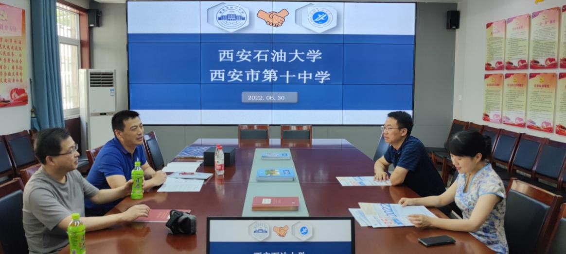 為推進(jìn)優(yōu)秀生源基地建設(shè),構(gòu)建協(xié)同發(fā)展共同體,2022年6月30日下午,音樂系黨總支書記孟開元、機(jī)械工程學(xué)院黨委書記蔡建文等一行三人赴西安市第十中學(xué),與西安市第十中學(xué)羅慶軍校長、尹鈺副校長就建立西安石油大學(xué)“優(yōu)秀生源基地”進(jìn)行了深入交流座談。