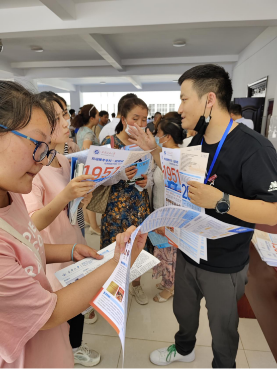 每到一校,招生組先與高中老師進行交流,交流結(jié)束后,就面向?qū)W生和家長開展宣傳和咨詢工作。張振軍老師在扶風(fēng)高級中學(xué)做了一場《陜西省志愿填報怎么填?》的講座,給家長和學(xué)生們講解相關(guān)志愿政策,受到家長和學(xué)生的歡迎。為了幫助參加咨詢活動的學(xué)生和家長更好地了解我校的基本情況和招生政策,招生老師進行了細(xì)致、深入的回答,并發(fā)放了招生宣傳材料。招生老師在現(xiàn)場與多位家長有深入交流,針對家長反映的專業(yè)問題,招生老師耐心給出了相關(guān)的建議。