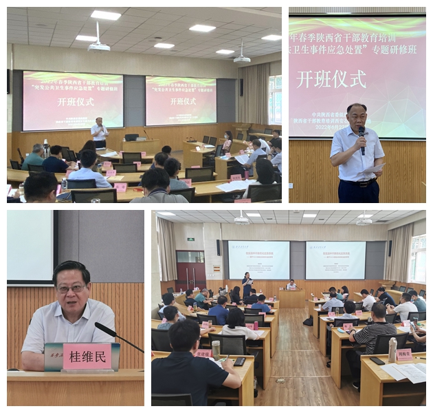 6月22日上午,由省委組織部主辦、我校干部教育培訓(xùn)基地承辦的2022年春季陜西省干部教育培訓(xùn)“突發(fā)公共衛(wèi)生事件應(yīng)急處置”專題研修班,在我校明德校區(qū)順利開班。繼續(xù)教育學(xué)院副院長(zhǎng)吳民生出席開班儀式并致辭,來(lái)自省直機(jī)關(guān)、地市政府的50名領(lǐng)導(dǎo)干部參加了開班儀式,儀式由班主任蘇楊主持。