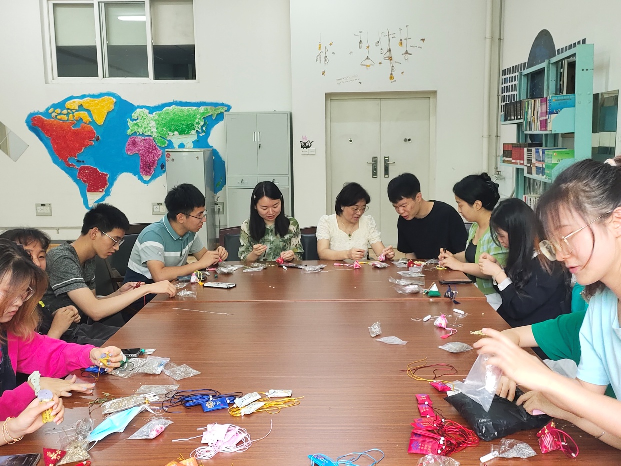 在端午節(jié)當天,該院團委學生干部在9號公寓樓下為來往的學生送五彩繩和縫好的香包,宣傳端午傳統(tǒng)文化和習俗,并表達節(jié)日的祝福。部分過往的學生也會參與到縫香包系彩繩活動中,品味端午,感受傳統(tǒng)文化節(jié)日的魅力。