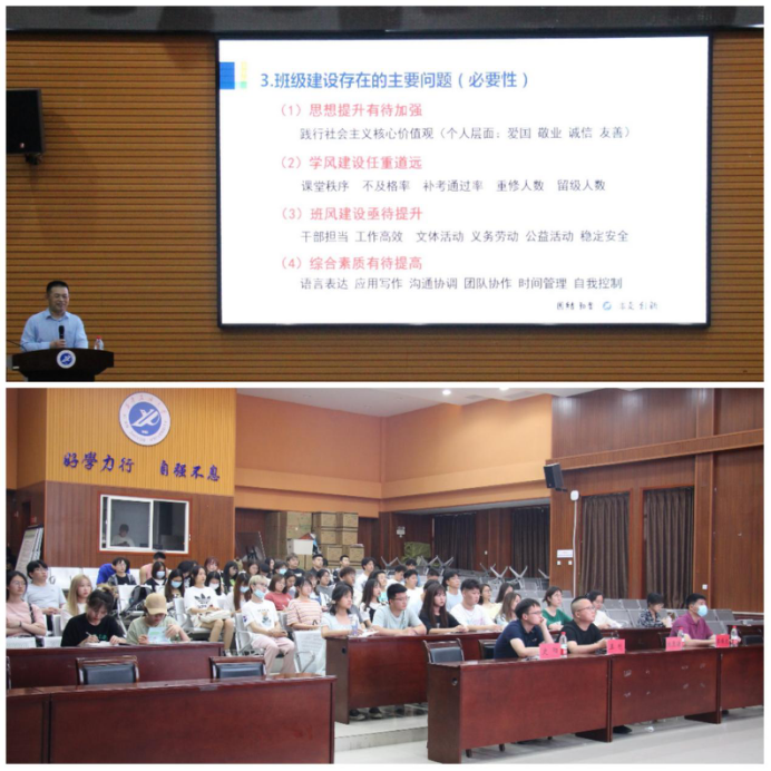 龐秉謙副部長(zhǎng)圍繞加強(qiáng)班級(jí)建設(shè)的重要性和必要性、如何做好班級(jí)建設(shè)工作以及如何做一名優(yōu)秀的班級(jí)學(xué)生干部三個(gè)方面展開培訓(xùn)。他指出,加強(qiáng)班級(jí)建設(shè)對(duì)推動(dòng)落實(shí)立德樹人根本任務(wù),踐行“為黨育人、為國(guó)育才”使命具有重要意義,當(dāng)前班級(jí)建設(shè)在思想提升、學(xué)風(fēng)建設(shè)、班風(fēng)建設(shè)、綜合素質(zhì)等方面依然存在不足。他強(qiáng)調(diào),加強(qiáng)班級(jí)建設(shè)一是要配齊配強(qiáng)班級(jí)“兩委”干部,做好學(xué)生干部的推薦、選拔和換屆工作;二是要規(guī)范班級(jí)工作的日常運(yùn)行機(jī)制,以思想建設(shè)和作風(fēng)建設(shè)為重點(diǎn),定期開展集體學(xué)習(xí)研討;三是要制定目標(biāo)計(jì)劃,總結(jié)經(jīng)驗(yàn)不足,有針對(duì)性加強(qiáng)能力培養(yǎng),提升班級(jí)建設(shè)工作的實(shí)效性;四是要根據(jù)班級(jí)實(shí)際情況,制定年度建設(shè)目標(biāo)計(jì)劃,明確分工、責(zé)任到人,跟蹤完成情況,及時(shí)反饋調(diào)整優(yōu)化。