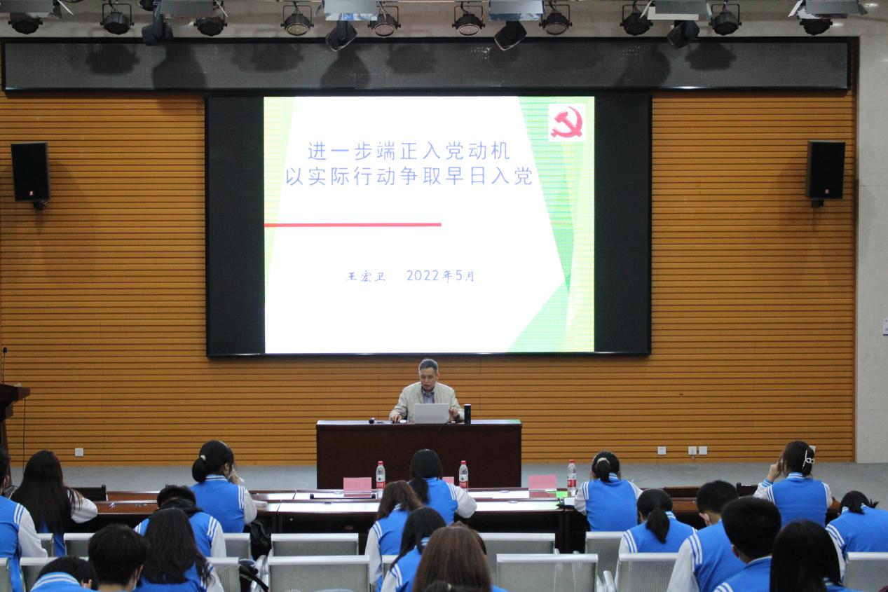 典禮結束后,經濟管理學院黨委書記王宏衛(wèi)以“進一步端正入黨動機,以實際行動爭取早日入黨”為題,為學員們講授黨課第一講。他從中國共產黨的性質和宗旨出發(fā),緊扣新時代黨的建設總要求,系統(tǒng)講授了黨章規(guī)定的黨員條件和標準,全面闡述了新時代大學生端正入黨動機的重要意義。強調正確的動機是入黨的首要問題,是加強黨性修養(yǎng)的終身課題,是保持黨的先進性和純潔性、推進全面從嚴治黨向縱深發(fā)展的重要內容。作為入黨積極分子要進一步端正入黨動機,認真學習黨的基本理論、基本路線、基本方略,以實際行動積極向黨組織靠攏。他鼓勵同學們要不斷提高政治站位,堅定理想信念,堅守初心使命,立志成才報國,恪守清正廉潔,奮勇爭先、當青春榜樣,爭取早日加入中國共產黨。