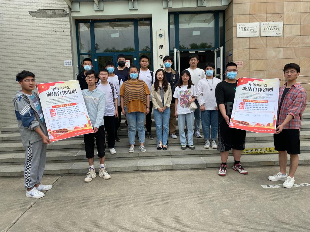 七個(gè)學(xué)生黨支部開展了富有特色的主題黨日活動(dòng)。觀看了“學(xué)習(xí)強(qiáng)國”和“秦風(fēng)網(wǎng)”相關(guān)主題視頻短片,內(nèi)容包括《<中國共產(chǎn)黨廉潔自律準(zhǔn)則>解讀第一集:公與私》、《焦裕祿(一)臨危授命》、警示教育紀(jì)錄片《背離初心的國企蛀蟲》等等。各學(xué)生黨支部通過學(xué)深悟透廉潔自律準(zhǔn)則要求,以正面典型為“鏡”開展示范教育,以反面典型為“戒”開展警示教育等方式,對(duì)標(biāo)先進(jìn)事跡反思反省找差距,對(duì)照反面案例清掃內(nèi)心污垢、自警自省,夯實(shí)清正廉潔思想根基,堅(jiān)定信仰信念信心,永葆共產(chǎn)黨人政治本色,發(fā)展積極健康黨內(nèi)政治文化。