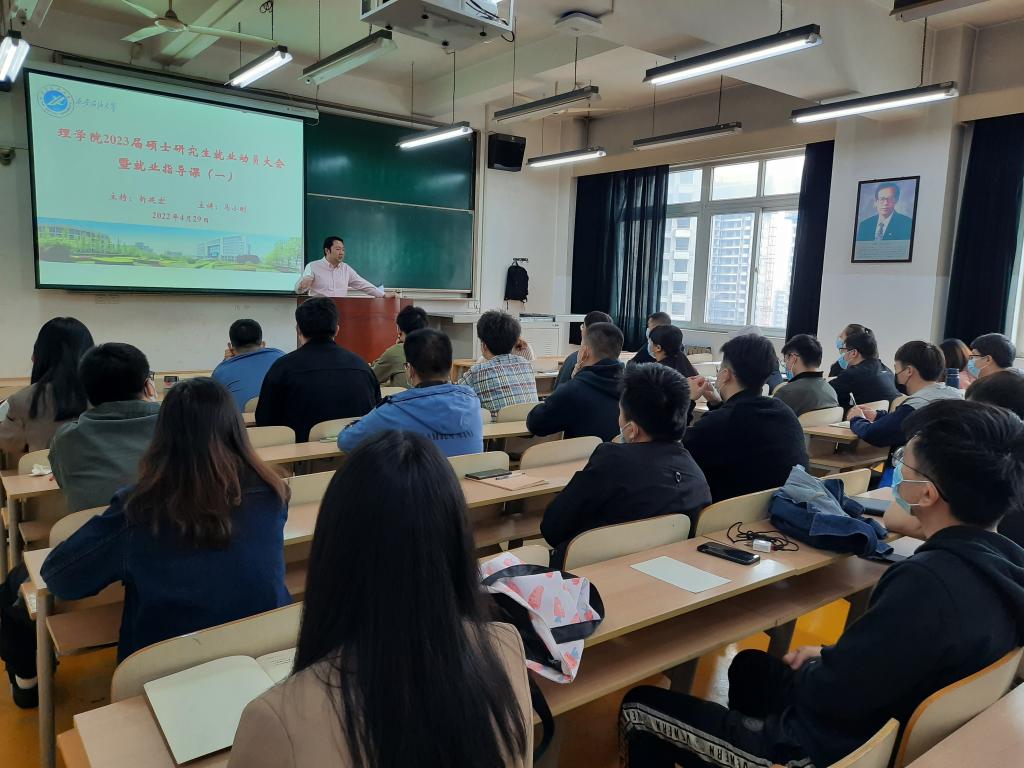 折延宏副院長向全體同學通報了理學院2022屆研究生目前就業(yè)情況:截至今年四月中旬,學院研究生已經圓滿完成100%的就業(yè)目標。他詳細分析了2022屆研究生的就業(yè)特點、就業(yè)質量,分享個別研究生同學成功的求職小故事,為2023屆研究生的就業(yè)、考博提供建議和參考。展望理學院2023屆研究生就業(yè)工作,折延宏副院長分四個方面向2023屆研究生同學做就業(yè)動員。一是希望研究生同學早思考、早準備,將就業(yè)與考博作為下一階段最重要工作;二是希望研究生同學立足所學專業(yè),將目光放長遠,到基層去、到祖國需要的地方建功立業(yè);三是希望研究生同學以求真務實的態(tài)度,盡快完成簡歷制作,尤其是考博的同學要在“學術味和實踐性”上下功夫;四是希望研究生同學關注本年度暑期社會實踐、企業(yè)實習,為成功求職打下堅實基礎。最后,結合疫情防控、實驗室安全、“五一”小長假,折副院長為大家作了安全教育。