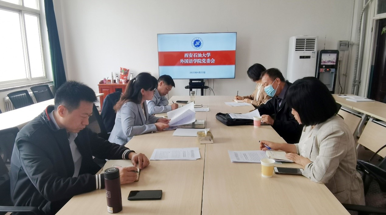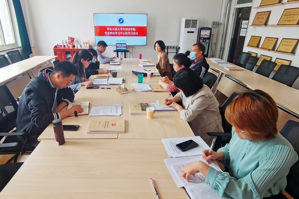 422日下午,外國語學(xué)院在雁塔校區(qū)華油能源樓727室召開黨委會暨黨委理論學(xué)習(xí)中心組學(xué)習(xí)會。深入學(xué)習(xí)兩個(gè)確立的決定性意義、全國兩會精神等,研究學(xué)院2022年黨支部學(xué)習(xí)教育的指導(dǎo)方案,并圍繞學(xué)校意識形態(tài)有關(guān)文件要求開展學(xué)院意識形態(tài)工作專題研討。學(xué)院黨委班子、理論中心組成員參加會議,會議由院黨委書記田虹霞主持。