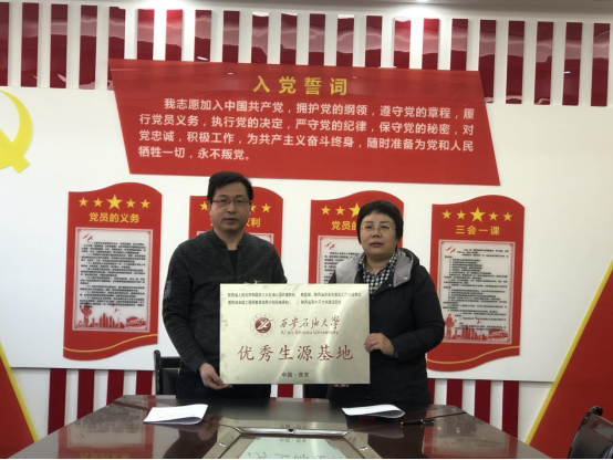 3月2日,我校“優(yōu)質生源基地”授牌儀式在西安市第五十三中學舉行。機械工程學院黨委書記蔡建文、計算機學院劉天時教授、機械工程學院綜合辦副主任馬寧馨及西安市第五十三中學校長劉輝、黨委書記王棟等相關部門負責人參加活動。