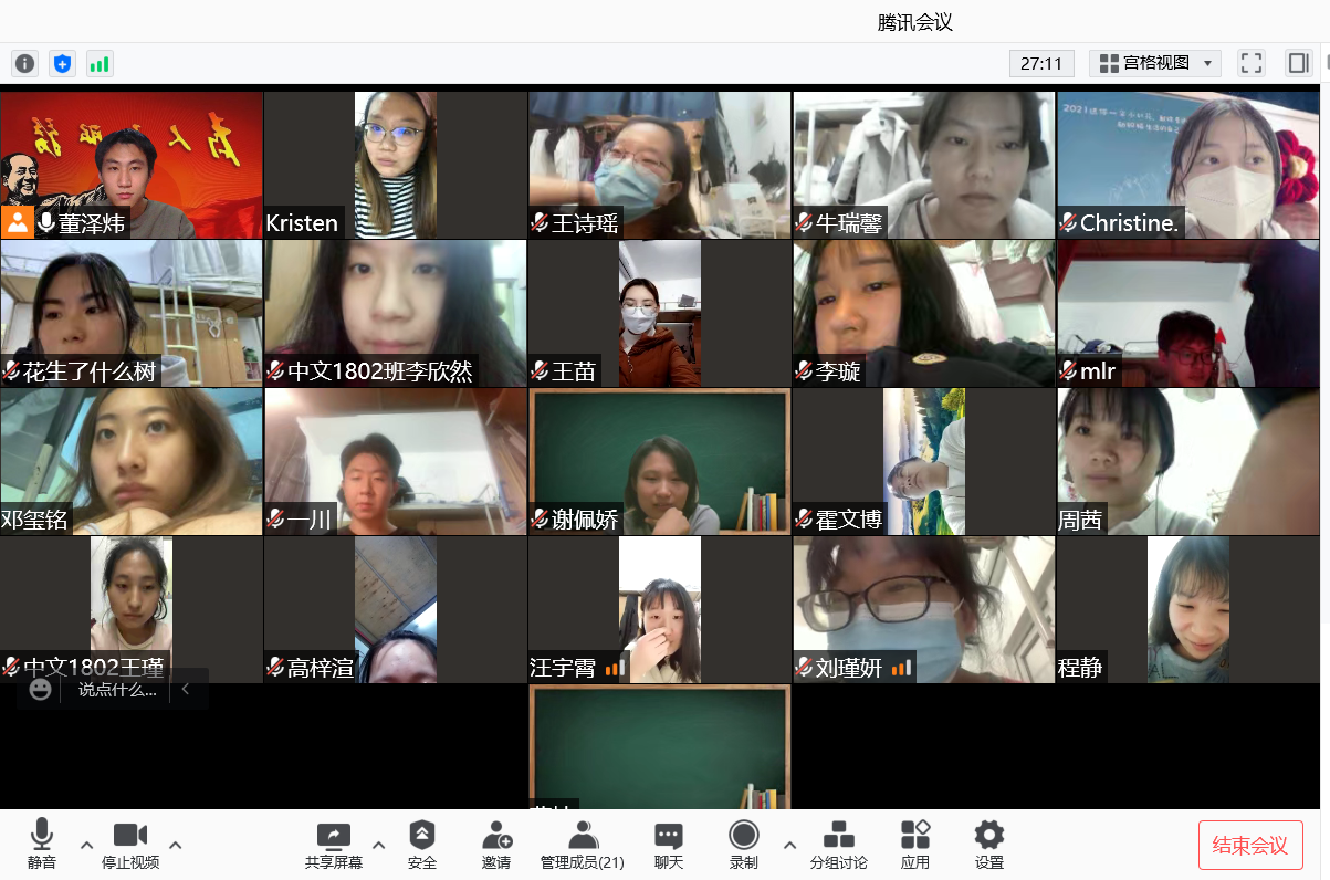 此次主題班會,為封閉在學(xué)校、隔離在西安或已經(jīng)到家的同學(xué)們提供了一個交流的平臺,將發(fā)言機(jī)會交到每一位親身經(jīng)歷疫情生活的同學(xué)們手里,同時也為學(xué)生和老師搭建了一個溝通的橋梁,拉近了師生之間的情感距離。同學(xué)們也從他人的發(fā)言中感受到了防疫工作者和志愿者的辛苦付出,培養(yǎng)了感恩之心,從而激勵自身勇敢面對困難,以良好的心態(tài)和積極樂觀的精神度過這段艱難的時期,大家相互支持、相互鼓勵,一定會戰(zhàn)勝疫情。