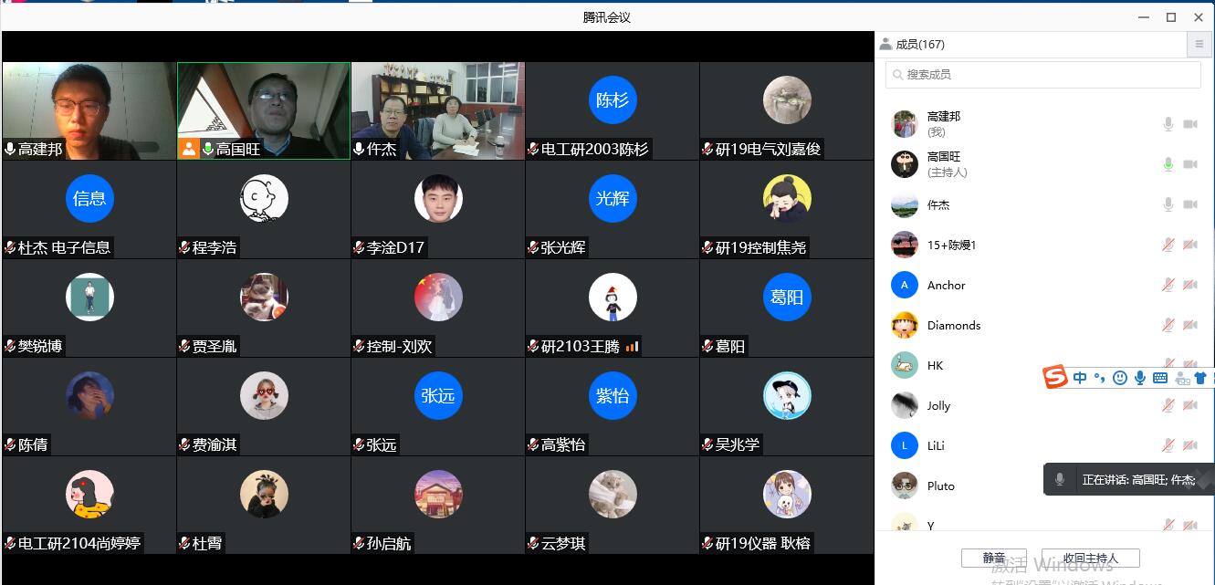 目前,西安市疫情防控進入“殲滅戰(zhàn)”階段,我校在師生同心努力下取得了疫情防控的階段性成果。隨著封控時間的延長,有些學生思想上松懈,放松了要求,尤其隨著春節(jié)的臨近,學生的情緒波動大。在這疫情防控的關(guān)鍵點,電子工程學院于2022年1月13日晚上19:00在騰訊會議平臺召開全體研究生黨員組織生活會,動員全體黨員打好最后的“殲滅戰(zhàn)”,保衛(wèi)學校平安。學院院長仵杰、副院長高國旺、學院黨委副書記畢軼慧、研究生輔導員高建邦以及164名黨員和預備黨員參加了會議。會議由高建邦老師主持。