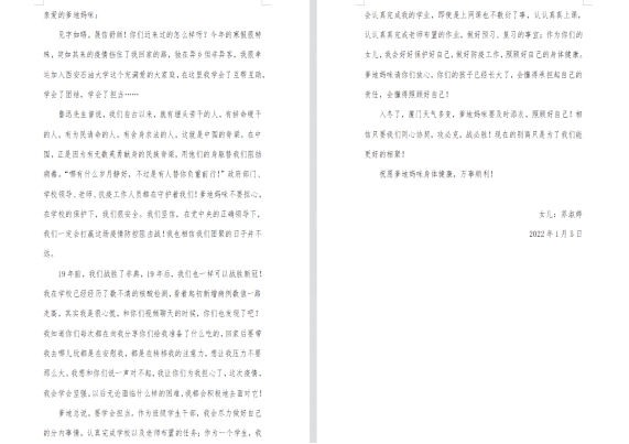 12月突如其來(lái)的疫情,打亂了我們的日常生活以及計(jì)劃。作為一名大學(xué)生,我們要嚴(yán)格遵守學(xué)校各項(xiàng)防控規(guī)定,積極配合學(xué)校的疫情防控措施,不能放松警惕,繼續(xù)堅(jiān)持,要有信心我們一定能夠打贏這場(chǎng)疫情防控阻擊戰(zhàn)。在學(xué)校期間,要積極主動(dòng)學(xué)習(xí),加強(qiáng)鍛煉,嚴(yán)格遵照學(xué)校規(guī)定的外出時(shí)間購(gòu)餐、洗浴,養(yǎng)成良好的作息時(shí)間。同時(shí)面對(duì)各類信息,要進(jìn)行全面客觀分析判斷,在當(dāng)前這個(gè)人人都是傳播者的自媒體時(shí)代,面對(duì)參差不齊的信息,一定要經(jīng)過(guò)自己的思考后作出判斷,做到不信謠不傳謠。少年強(qiáng)則國(guó)強(qiáng),作為當(dāng)代大學(xué)生的我們要肩負(fù)責(zé)任,擔(dān)當(dāng)使命,努力學(xué)習(xí),不斷奮斗,始終與國(guó)家同命運(yùn),早日成為社會(huì)主義事業(yè)的合格建設(shè)者和可靠接班人。