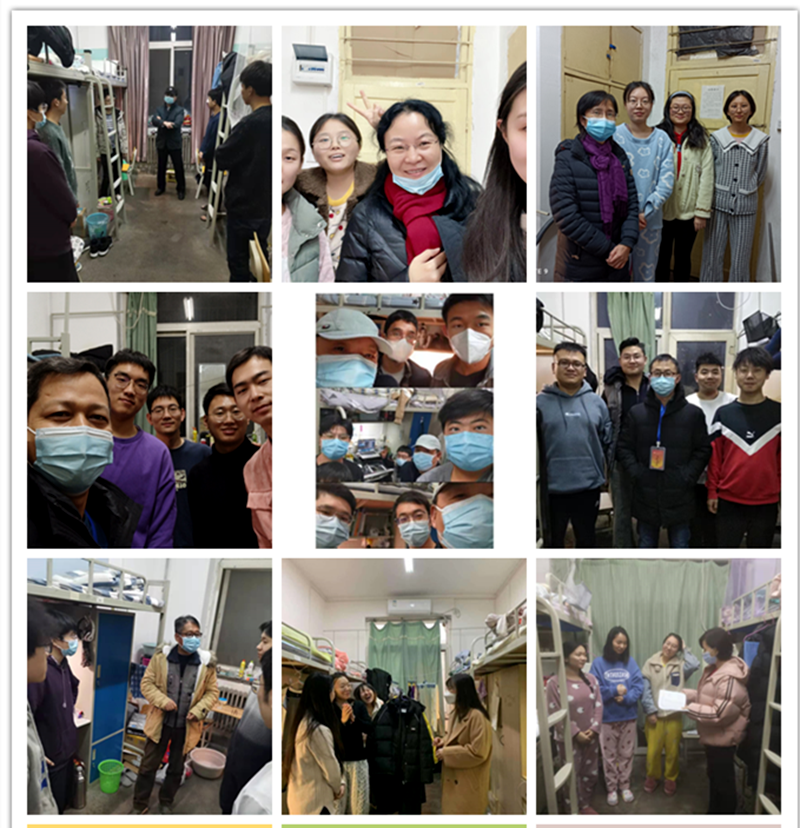 一是全過程陪伴。學院黨政領(lǐng)導、課任教師、輔導員老師常態(tài)化深入學生宿舍,就學生們關(guān)心的疫情形勢與政策、科學防護知識、愛國奉獻擔當、校園管理紀律、生活學習安排、心理狀態(tài)調(diào)試、當下問題訴求等內(nèi)容進行解讀、安撫、溝通和反饋。同時,作為學工干部全員堅守在鄠邑校區(qū)的學院,學工辦全體輔導員老師堅持常態(tài)化深入宿舍,及時關(guān)注學生思想動態(tài)和心理動態(tài),做好學生與學校之間良性溝通的橋梁。二是全過程教育。學院印發(fā)關(guān)于開展疫情防控期間開展線上主題班團會的通知和關(guān)于開展線上宿舍系列文化活動的通知文件,將思想政治教育和文化育人結(jié)合起來,確保疫情期間思想政治教育有成效,文化育人有成果。三是全過程管理。學院黨委堅持底數(shù)清楚,精準掌握學院教職工及其家屬和租戶人數(shù),確保每日核酸通知無遺,檢測全覆蓋;教師先鋒隊通過走訪宿舍、校園志愿服務(wù)等方式,將解決實際問題與強化人文關(guān)懷結(jié)合起來;學工辦嚴格落實晨午檢、晚簽到、核酸核查、線上教學管理等工作制度,堅持線上線下相結(jié)合、督促與檢查并重的方式,確保各項過程管理行之有痕、落到實處。