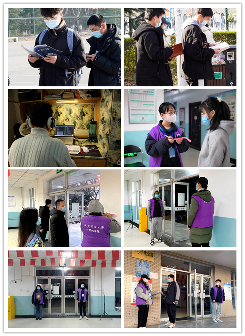 一是黨委牽頭專題部署落實。學院三次召開疫情防控處科級干部線上工作會議,專題傳達陜西省和學校最新政策要求,堅持解決師生現(xiàn)實問題與解決心理問題相結(jié)合,疫情防控與安全穩(wěn)定相結(jié)合,安排部署、研討和溝通疫情期間兩校區(qū)本科生、研究生教育教學、學習生活、身心健康等各種工作。二是全員身體力行。學院黨委書記李強,黨委副書記、院長王魁生帶頭加入2022年研究生入學考試監(jiān)考工作,確??荚図樌瓿伞1究粕嘀魅卫蠋熗ㄟ^主題班團會的形式對學生進行“云”指導。三是師生黨員發(fā)揮模范作用。兩校區(qū)均成立了教工和學生黨員先鋒隊。雁塔校區(qū)成立了由19名教工黨員組成的教工黨員先鋒隊,鄠邑校區(qū)各年級組成共120人的學生黨員先鋒隊。在關(guān)鍵時刻,凸顯黨員先鋒模范作用。四是學生志愿者沖鋒在前。動員大量學生和共青團員加入疫情防控志愿者隊伍,讓絕大多數(shù)學生從旁觀者變成參與者,強化新時代青年的使命擔當。據(jù)不完全統(tǒng)計,我院有超過30%的學生以志愿者身份參與到此次疫情防控中來,他們是糾察隊中的巡查員,是核酸檢測隊伍的引導者,是學校秩序的維護者。