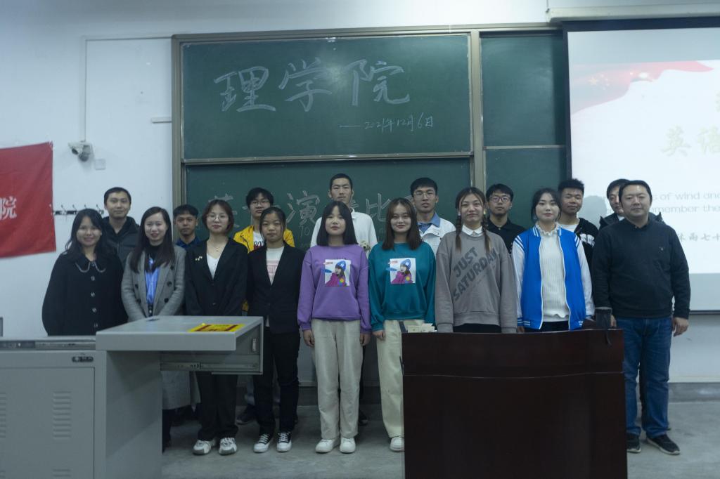 為進(jìn)一步加強(qiáng)學(xué)風(fēng)建設(shè),提高同學(xué)們英語學(xué)習(xí)的積極性,營造濃郁英語學(xué)習(xí)氛圍,理學(xué)院于12月6號(hào)晚在鄠邑校區(qū)博思樓114教室舉行了以“櫛風(fēng)沐雨七十載,飲水思源銘校恩”為主題的英語演講比賽。理學(xué)院黨委副書記馬小剛出席并講話,學(xué)生工作辦公室主任丁亦喆、輔導(dǎo)員林曄、計(jì)算機(jī)學(xué)院輔導(dǎo)員姜楠、李路老師擔(dān)任此次比賽評(píng)委,理學(xué)院近200名學(xué)生參加本次活動(dòng)。