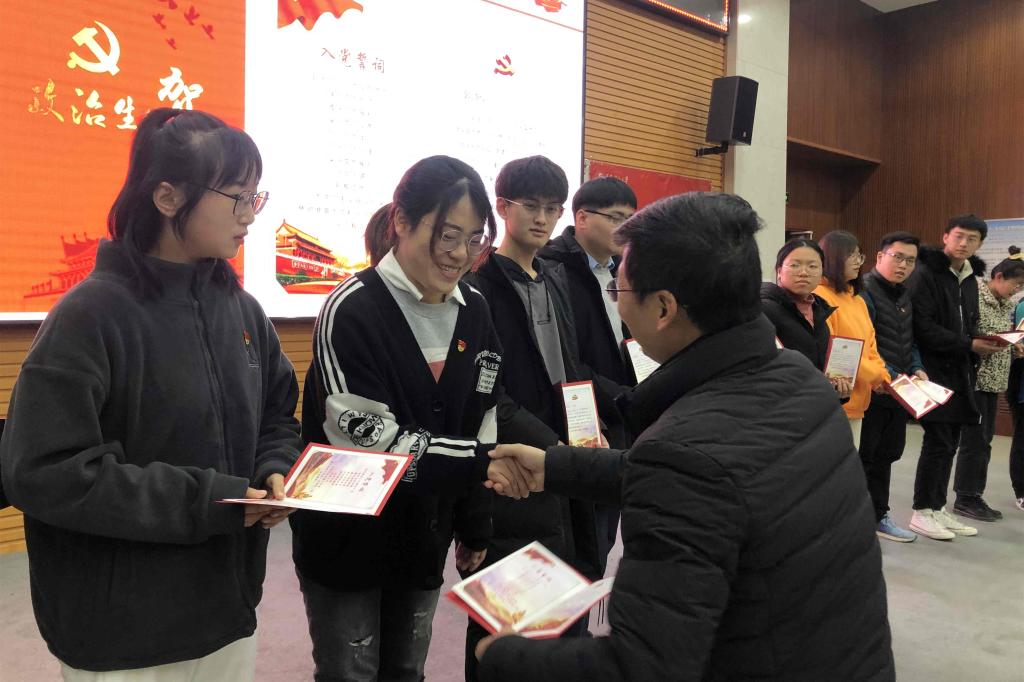 本次政治生日儀式在《國際歌》的歌聲中拉開序幕,朱戰(zhàn)威老師為本次政治生日會致辭,向今天參加政治生日的全體黨員表示祝福,他希望全體黨員牢記自己的政治生日,時刻警醒自己,對黨忠誠,不忘入黨初心、牢記入黨使命。黨員代表王志超、預(yù)備黨員代表陳科棋,先后宣讀了自己的入黨志愿書并作表態(tài)發(fā)言,號召廣大青年愛國愛黨,不忘初心、牢記使命,為實現(xiàn)中華民族的偉大復(fù)興而努力奮斗。