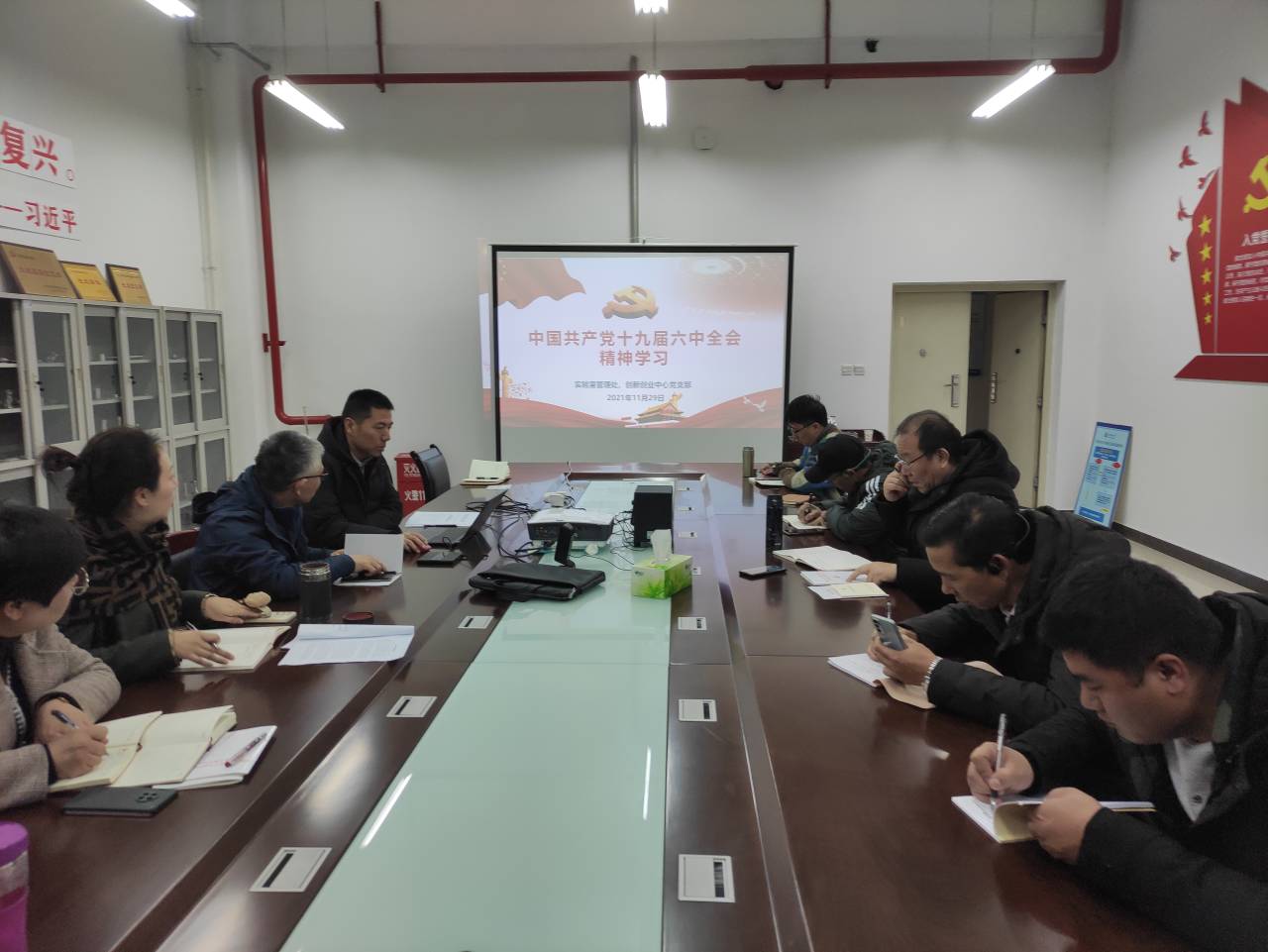 11月29日上午,實驗室管理處、創(chuàng)新創(chuàng)業(yè)中心黨支部在工程訓(xùn)練中心106會議室組織全體黨員集中學(xué)習(xí)黨的十九屆六中全會精神。