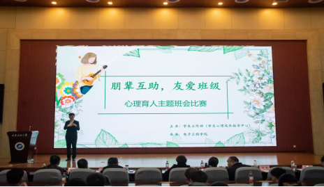 為進(jìn)一步開展大學(xué)生心理健康教育工作,發(fā)揮學(xué)生心理骨干作用,夯實(shí)我校五級(jí)心理危機(jī)預(yù)警防控暨心理健康教育體系,提升心理育人質(zhì)量,1125日晚,由學(xué)生工作部(學(xué)生心理成長(zhǎng)指導(dǎo)中心)主辦、電子工程學(xué)院承辦的2021“朋輩互助,友愛班級(jí)”心理育人主題班會(huì)比賽在鄠邑校區(qū)弘石報(bào)告廳舉行。決賽共有9支代表隊(duì)參賽,相關(guān)部門、院系負(fù)責(zé)人擔(dān)任評(píng)委,150余名師生觀看了本場(chǎng)比賽。