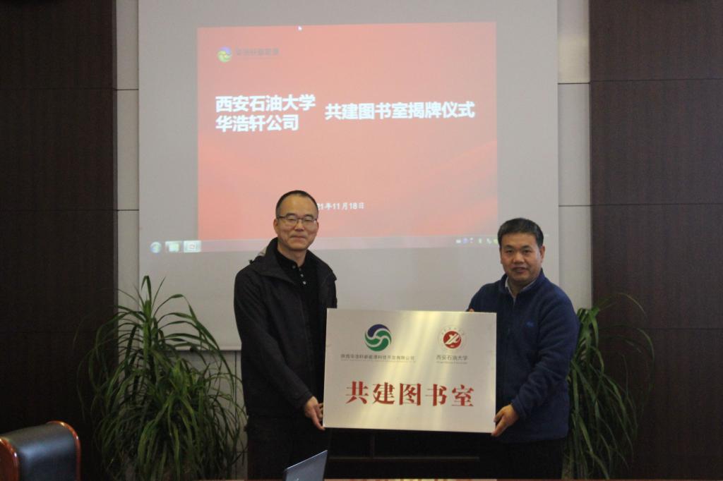 11月18日上午,我校助力鄉(xiāng)村振興“共建圖書(shū)室”揭牌捐贈(zèng)儀式在永壽縣華浩軒新能源科技開(kāi)發(fā)有限公司舉行。校工會(huì)副主席劉陜軍帶隊(duì)一行四人,華浩軒新能源科技開(kāi)發(fā)有限公司董事長(zhǎng)王峰、副總經(jīng)理劉彥仁和相關(guān)負(fù)責(zé)人參加了儀式。