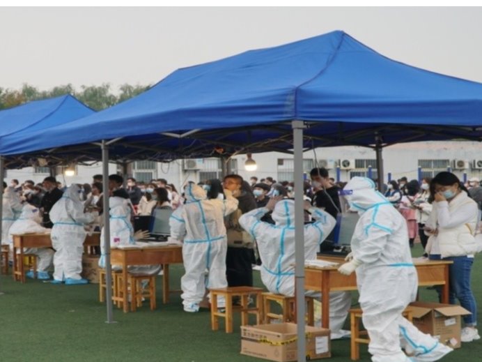 三是聞令而動(dòng),全力投入兩校區(qū)全員和重點(diǎn)人群的核酸采集等有關(guān)工作。在核酸檢測(cè)工作中,校醫(yī)院承擔(dān)著雁塔校區(qū)全員核酸檢測(cè)的采樣、鄠邑校區(qū)全員核酸檢測(cè)的身份核驗(yàn)及部分特殊人群的采樣工作等任務(wù)。每次在接到關(guān)于開(kāi)展全員核酸檢測(cè)的緊急通知后,校醫(yī)院與時(shí)間賽跑,從布置場(chǎng)地、準(zhǔn)備設(shè)備物資、組建核酸檢測(cè)采樣隊(duì),做到了反應(yīng)迅速,及時(shí)有序到位。采集實(shí)施過(guò)程中,校醫(yī)院醫(yī)護(hù)人員嚴(yán)格落實(shí)個(gè)人防護(hù)措施,采樣操作規(guī)范,確保了樣本質(zhì)量。截至目前,校醫(yī)院共派出核酸采樣醫(yī)務(wù)人員200余人次,累計(jì)采集師生樣本近50000多人份,重點(diǎn)人群500余人份。