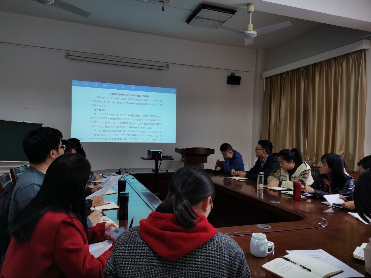 與會教師黨員通過接續(xù)閱讀和研討的方式深入學習了《中國共產(chǎn)黨普通高等學?;鶎咏M織工作條例》,深切領(lǐng)會了《條例》對于全面貫徹黨的教育方針,落實立德樹人根本任務(wù),建設(shè)高質(zhì)量教育體系、建設(shè)教育強國,具有重要意義。