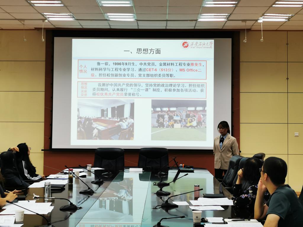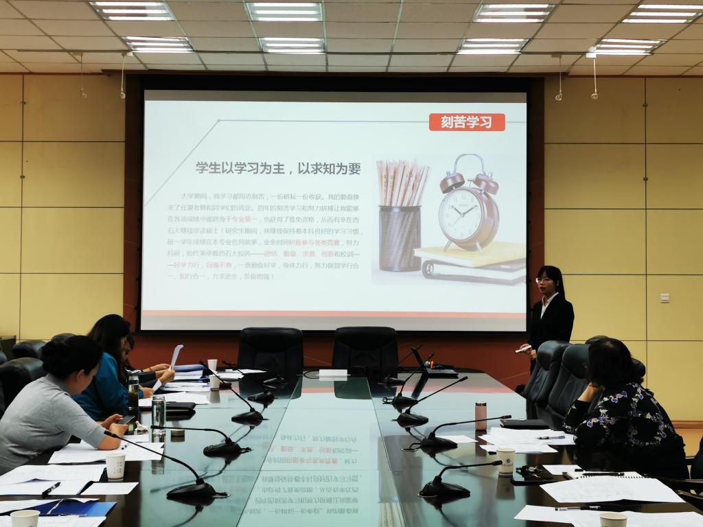 會上,高榮芳部長傳達了本次王濤英才獎學金評選相關要求,并將各院系推薦參與本次答辯研究生情況作了總體介紹。隨后,參評研究生按現(xiàn)場抽簽順序進行答辯。同學們通過精心準備的PPT,從思想政治、學術成果、學習成績、社會實踐、綜合素養(yǎng)等方面展示了自己取得的各項成果。評審委員會通過聽取擬獲獎候選人答辯,對參加答辯的7名“王濤英才”獎學金候選研究生進行了打分排序,最終產(chǎn)生了1名“王濤英才”獎學金擬獲獎學生。