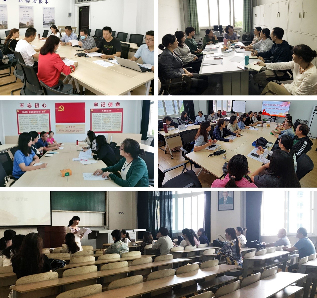 五、專題研討,強(qiáng)化內(nèi)生動(dòng)力。各教工黨支部、各系部召開專題學(xué)習(xí)和研討會(huì),集中學(xué)習(xí)師德師風(fēng)專題資料以及張桂梅、黃大年等先進(jìn)事跡,并結(jié)合教學(xué)科研實(shí)際,從師德師風(fēng)建設(shè)、課程思政、專業(yè)教育、人才培養(yǎng)等方面進(jìn)行交流研討,推動(dòng)學(xué)思踐悟。