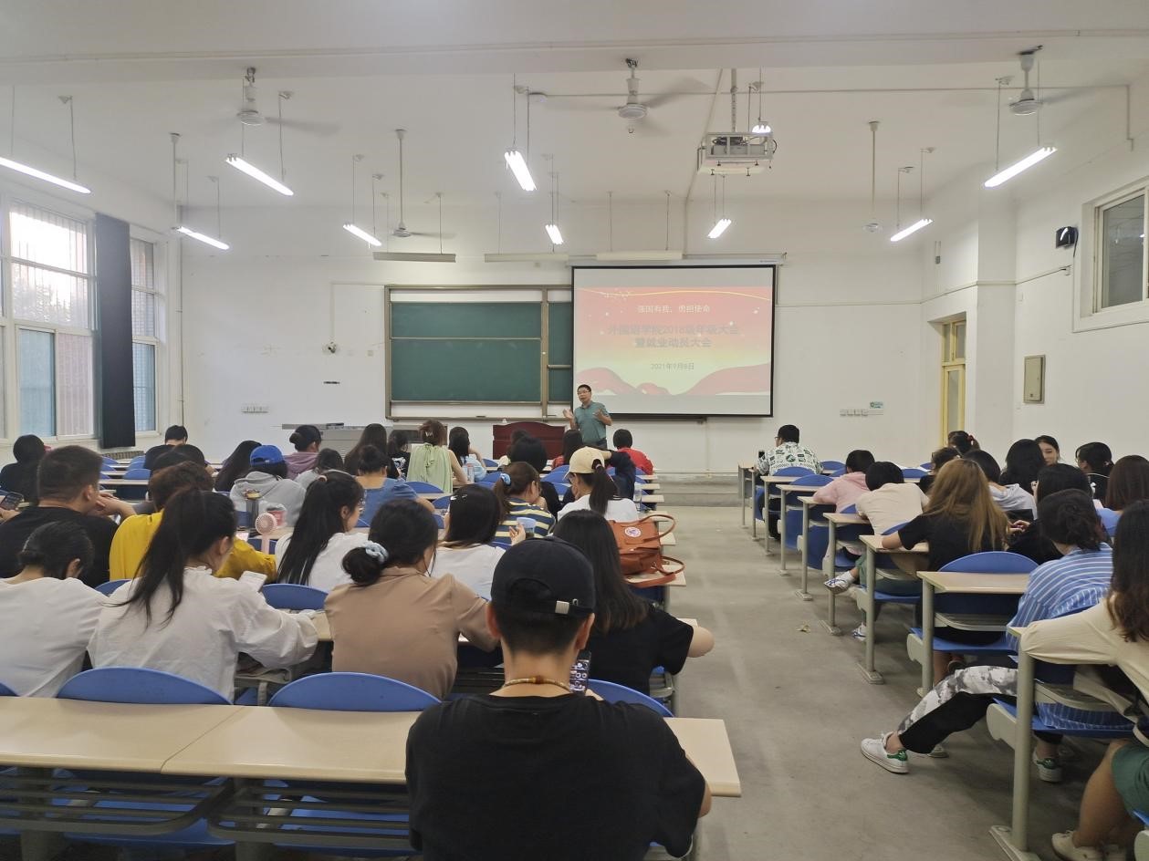 為積極應(yīng)對(duì)疫情常態(tài)化下的嚴(yán)峻就業(yè)形勢(shì),貫徹落實(shí)習(xí)近平總書記來(lái)陜重要講話精神,按照學(xué)校2022屆畢業(yè)生就業(yè)工作部署要求,9月8日晚,外國(guó)語(yǔ)學(xué)院在鄠邑校區(qū)B105、B104召開(kāi)2018級(jí)年級(jí)大會(huì)暨就業(yè)動(dòng)員會(huì)。學(xué)院黨委副書記王業(yè)青、2018級(jí)輔導(dǎo)員陳浩和全體應(yīng)屆畢業(yè)生參加會(huì)議。