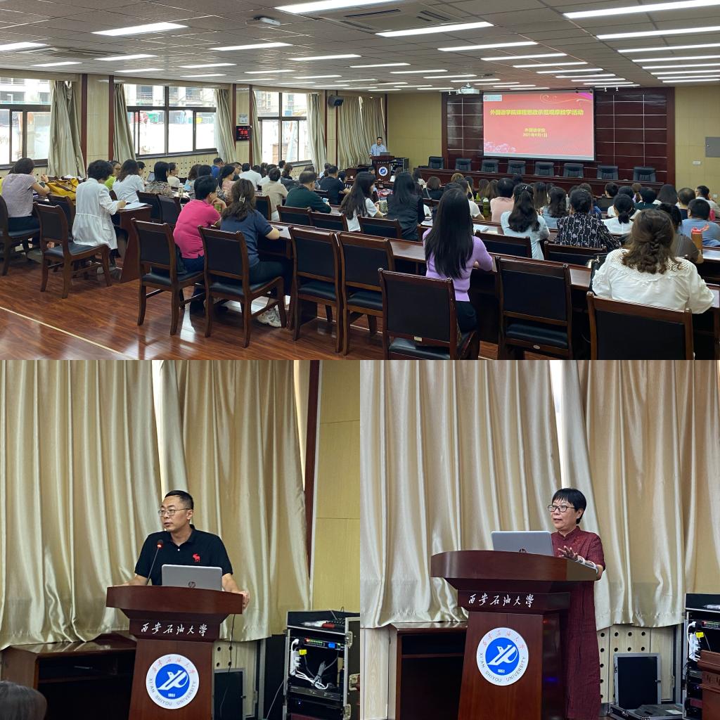 教學(xué)觀摩前,教務(wù)處副處長(zhǎng)吳勛和外國(guó)語(yǔ)學(xué)院院長(zhǎng)于艷英分別從國(guó)際形勢(shì),外語(yǔ)教學(xué)等方面強(qiáng)調(diào)了課程思政的重要性做了講話(huà)。教學(xué)示范觀摩活動(dòng)特邀請(qǐng)我院在西安石油大學(xué)課程思政大練兵競(jìng)賽獲得二等獎(jiǎng)的周曉寒老師和在西安石油大學(xué)青年教師教學(xué)競(jìng)賽一等獎(jiǎng)的陳旭老師以及在“外教社杯”全國(guó)高校外語(yǔ)教學(xué)大賽陜西賽區(qū)三等獎(jiǎng)苗旸老師為大家做課程思政展示,老師們?cè)诮虒W(xué)活動(dòng)中將中外文化相結(jié)合,把課程思政融入到外語(yǔ)教學(xué)中,引導(dǎo)學(xué)生用外語(yǔ)講述中國(guó)故事,用外語(yǔ)傳播中國(guó)文化。