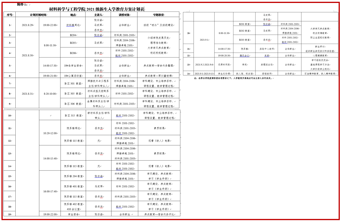 精心組織謀劃,提升育人合力。學院充分認識到新生入學教育是幫助學生盡快適應高校學習和生活的關鍵環(huán)節(jié),對于專業(yè)人才培養(yǎng)、塑造學生人格、全面成長成才有著非常重要的意義。學院各系、中心、辦公室教師精心組織謀劃,注重把握新生特點和實際需求,制定《材料科學與工程學院2021級新生入學教育方案計劃》,精心設計每一個教育環(huán)節(jié),認真策劃每一項教育內(nèi)容,充分發(fā)揮學院領導、專家學者和學工干部的引領作用,切實將新生入學教育活動落到實處。