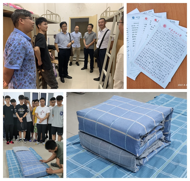 行為養(yǎng)成教育,守校園管理規(guī)定。外出看隊列,進門看內(nèi)務。今年由于疫情防控的原因軍訓暫緩,但是學院高度重視學生自律自立習慣的養(yǎng)成,學院黨委書記宋海洋、黨委副書記張云姿多次查看學生宿舍,并與學生談發(fā)展、話未來。軍人出身的岳東東老師利用每天晚上為學生展示軍訓疊被子的標準,岳老師動作嫻熟,操作規(guī)范、講解清楚,引來同學們陣陣喝彩,疊被子的環(huán)節(jié)讓同學們明白了生活中要一絲不茍,細節(jié)決定成?。×硗?,為了建立統(tǒng)一規(guī)范的學生管理制度、綜合測評體系,將學生德育、智育、體育、勞育一一量化,導向明確、科學有效、合理評價,學院全體學工干部組織學生分批次學習了《2021版西安石油大學學生手冊》并認真記錄學習筆記,使學生更快速地熟悉學校各項管理規(guī)定,樹立規(guī)矩意識。