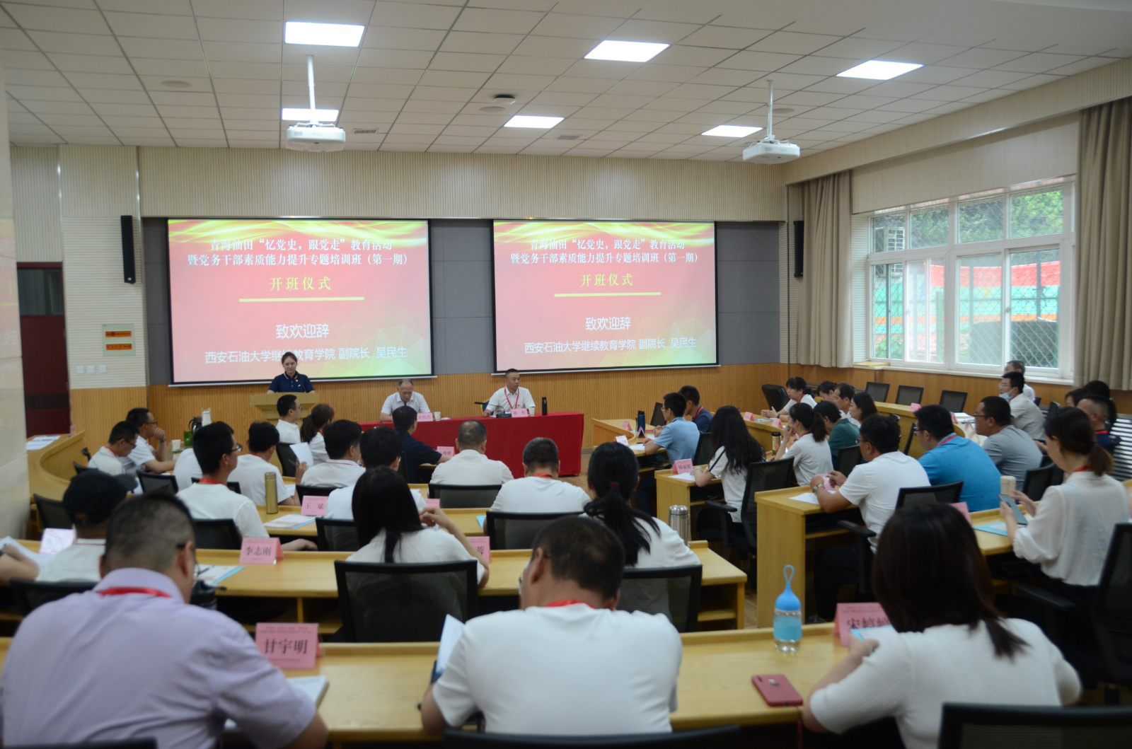 7月23日上午,青海油田“憶黨史,跟黨走”專題教育活動(dòng)暨黨務(wù)干部素質(zhì)能力提升專題培訓(xùn)班(第一期)在我校明德校區(qū)順利開(kāi)班。來(lái)自油田三家二級(jí)單位的50位黨務(wù)工作者參加培訓(xùn)。青海油田誠(chéng)信服務(wù)公司黨委委員、副經(jīng)理姜松、西安石油大學(xué)繼續(xù)教育學(xué)院副院長(zhǎng)吳民生參加開(kāi)班儀式。