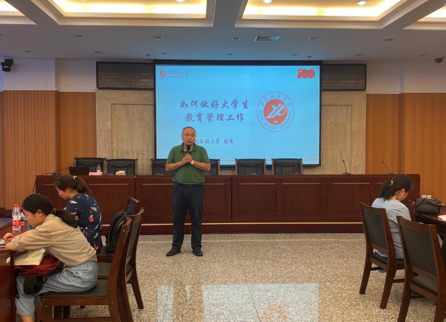 龐秉謙副部長在為期1天的培訓(xùn)交流中,鼓勵輔導(dǎo)員老師們要認真學(xué)習(xí)《中共中央、國務(wù)院關(guān)于加強和改進新形勢下高校思想政治工作的意見》《普通高等學(xué)校輔導(dǎo)員隊伍建設(shè)規(guī)定》《高等學(xué)校輔導(dǎo)員職業(yè)能力標(biāo)準(暫行)》《關(guān)于加快構(gòu)建高校思想政治工作體系的意見》等重要文件和相關(guān)政策的內(nèi)容,把握其精神實質(zhì),在實踐中扎實落實工作要求。要認真學(xué)習(xí)《西安石油大學(xué)學(xué)生管理規(guī)定》《西安石油大學(xué)全日制本科生學(xué)籍管理規(guī)定》《西安石油大學(xué)重點關(guān)注學(xué)生穩(wěn)定安全防控管理辦法(試行)》等內(nèi)容,掌握學(xué)校在大學(xué)生思想政治教育管理服務(wù)等方面的制度文件和管理規(guī)定。重點解讀了《中共西安石油大學(xué)委員會關(guān)于進一步加強我校本科生班級建設(shè)的實施意見》,對下一步做好班級建設(shè)等重點工作對參訓(xùn)輔導(dǎo)員進行了深入和廣泛的動員。他從我校輔導(dǎo)員隊伍建設(shè)現(xiàn)狀分析出發(fā),提出了今后工作的思路,并在輔導(dǎo)員專業(yè)化團隊的組建、建設(shè)目標(biāo)、建設(shè)任務(wù)、成果產(chǎn)出等方面提出了具體設(shè)想,鼓勵各位輔導(dǎo)員老師注重自身職業(yè)規(guī)劃,多措并舉推動自身的專業(yè)化和職業(yè)化發(fā)展。