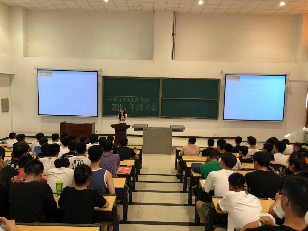 6月27日下午,地球科學與工程學院在石工地科樓115教室舉行2018級主題年級大會。學院黨委副書記王瑩、學工辦主任李化杰參加年級大會。會議由輔導員李佩琦老師主持,2018級全體同學參加大會。