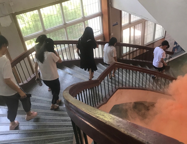 最后,在何教官的指揮下,全體人員參與了火災(zāi)逃生疏散演練。
