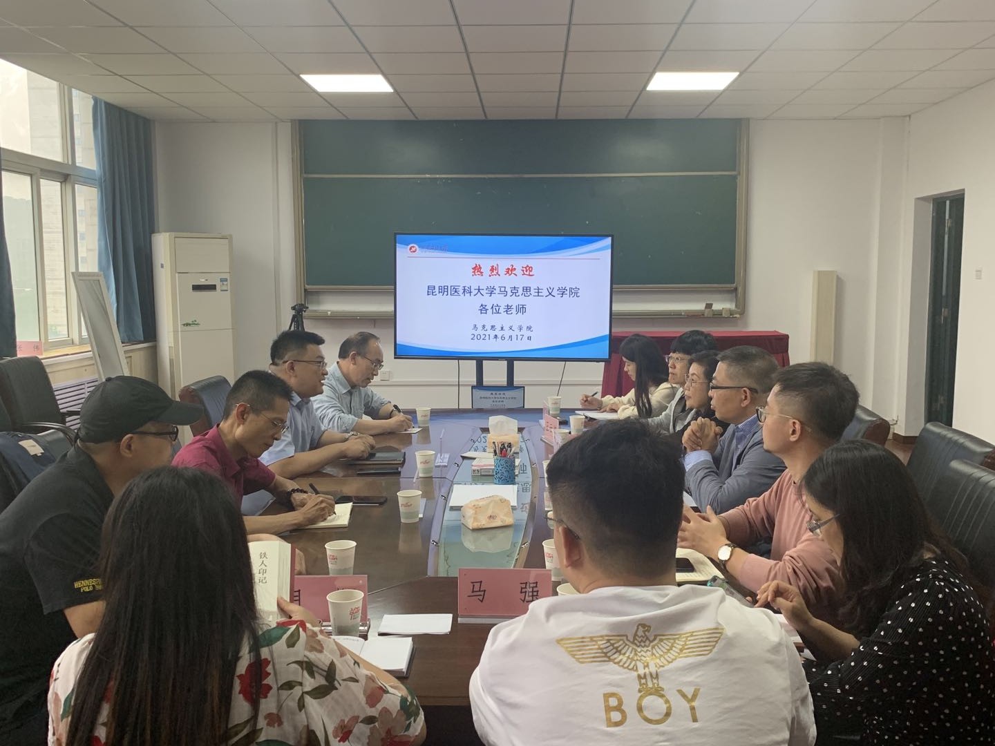 6月17日下午,昆明醫(yī)科大學(xué)馬克思主義學(xué)院副院長劉翠英一行8人來我院交流座談。座談交流會(huì)由張海濤院長主持,副院長董春詩及各教研室主任參加了座談。