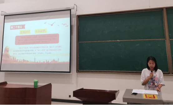 何思怡同學(xué)回顧了共產(chǎn)黨百年奮斗的光輝歷程和歷史性貢獻(xiàn),從什么學(xué)習(xí)黨史,怎么學(xué)習(xí)黨史,學(xué)好黨史做什么等多個(gè)方面來(lái)進(jìn)行宣講。