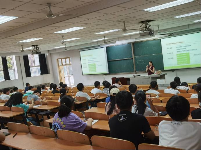 講座過程中,兩位老師結(jié)合實例用幽默風趣的話語營造輕松愉悅的氣氛,吸引眾多同學專心致志地聽講。武絨老師向?qū)W生介紹大學英語四級考試中聽力部分的考試題型,考試目的以及考試過程中的注意事項,并講授了聽力考試中三種題型的應試技巧。劉西娟老師主要講授四級作文的寫作技巧及考試中寫作的注意事項,并對不同類型的真題范文進行深入淺出地分析。