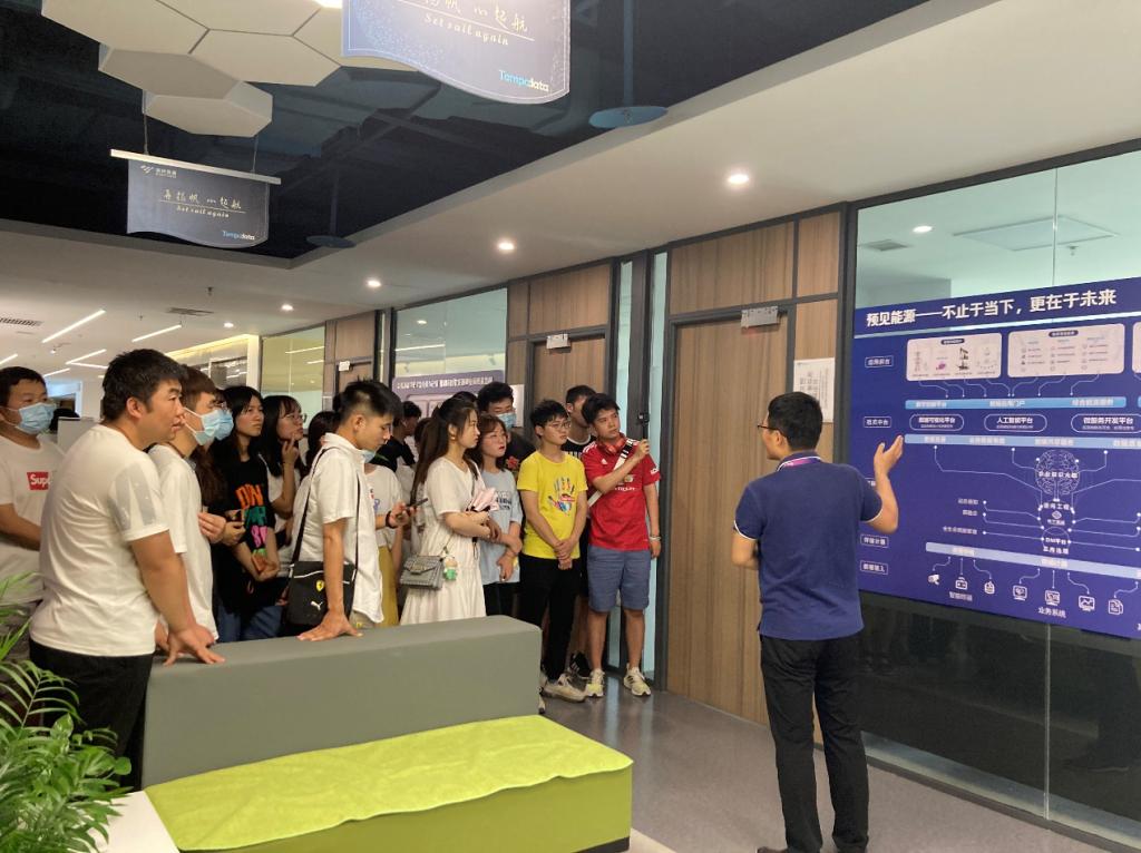 隨后,公司區(qū)域總監(jiān)楊東濤帶領(lǐng)大家參觀了美林?jǐn)?shù)據(jù)的科技展廳,楊總監(jiān)引用習(xí)近平總書(shū)記的話“推進(jìn)互聯(lián)網(wǎng)、大數(shù)據(jù)、人工智能同實(shí)體經(jīng)濟(jì)深度融合,推進(jìn)制造業(yè)產(chǎn)業(yè)模式和企業(yè)形態(tài)根本性轉(zhuǎn)變,促進(jìn)我國(guó)產(chǎn)業(yè)邁向全球價(jià)值鏈中高端”,進(jìn)一步向同學(xué)們說(shuō)明了大數(shù)據(jù)發(fā)展的重要性和必要性,并就“如何通過(guò)技術(shù)和能力提升自己”與同學(xué)們進(jìn)行了交流探討。