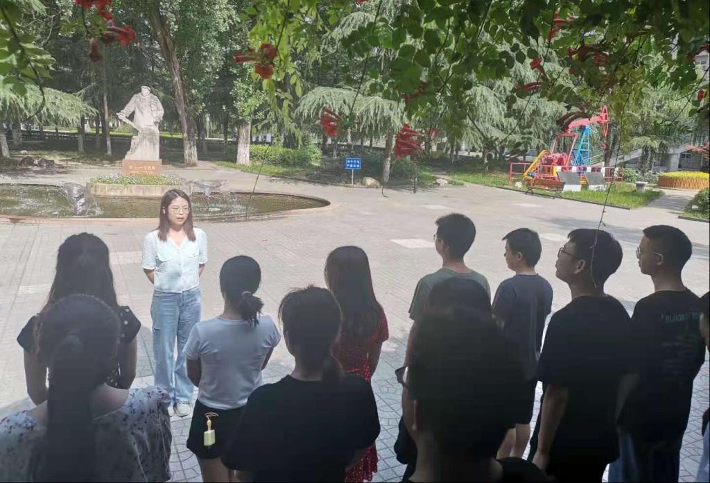 恰逢各高校畢業(yè)生文明離校之際,2018級研究生黨支部以深入開展黨史學(xué)習(xí)教育為契機(jī),組織了次主題黨日活動(dòng)?;顒?dòng)開始,支部所有黨員同志在李超偉老師的帶領(lǐng)下面向黨旗,在我校鐵人雕像前重溫入黨誓詞,進(jìn)行莊嚴(yán)宣誓:牢記初心使命,堅(jiān)定理想信念,弘揚(yáng)傳承鐵人精神,學(xué)石油,愛石油,奉獻(xiàn)石油,將青春奉獻(xiàn)給黨和人民最需要的地方。