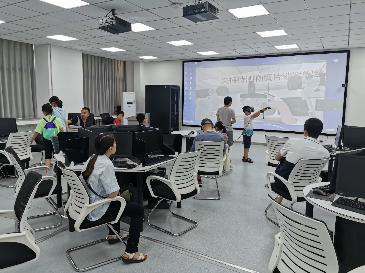 本次活動開放了理學院物理實驗中心、VR虛擬仿真實驗室和大學物理演示實驗室。開放項目包括VR虛擬仿真實驗、三球儀、雅各布天梯、太陽能光控飛機、智能家居、人體導電、電磁炮、磁懸浮列車等66個演示實驗。小朋友和家長們首先有序參觀了大學物理演示實驗,大家對實驗室的演示實驗項目充滿了好奇,黨員老師熱情周到的為小朋友及其家長詳細介紹了實驗項目、實驗原理、操作方法及注意事項。小朋友們聽的津津有味,隨后他們在老師們的指導下,自己動手親自體驗各種實驗項目。隨后,大家體驗了VR虛擬仿真實驗等其他項目。為進一步做好疫情防控,增強來訪者的體驗效果,學院對來仿者進行了分組安排,參加體驗的小朋友及家長們?nèi)褙炞⒌爻两隗w驗活動中,在學習中獲取了知識、獲得了快樂。
