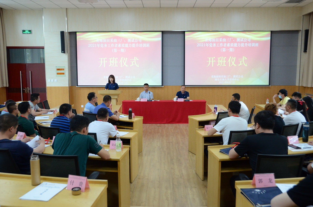 6月7日上午,“青海油田采油三廠、測試公司2021年黨務工作者素質能力提升培訓班(第一期)”在我校明德校區(qū)順利開班。來自兩家公司的50余位黨務工作者參加培訓。青海油田采油三廠紀委書記丁昌航、西安石油大學繼續(xù)教育學院院長談建勤參加開班儀式,儀式由班主任康高梅子主持。