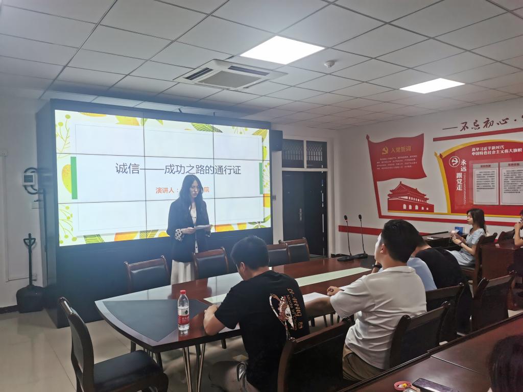本次活動分為誠信主題演講、勵志成才報告、觀看反詐騙校園行安全教育短片三個環(huán)節(jié)。首先,各位研究生參賽選手參照“砥礪誠信品格 揚帆誠信人生”主題,結(jié)合自身經(jīng)歷,旁征博引,引導大家牢固樹立誠信意識,恪守學術(shù)道德,堅守學術(shù)誠信,積極踐行誠實守信的道德觀念。
