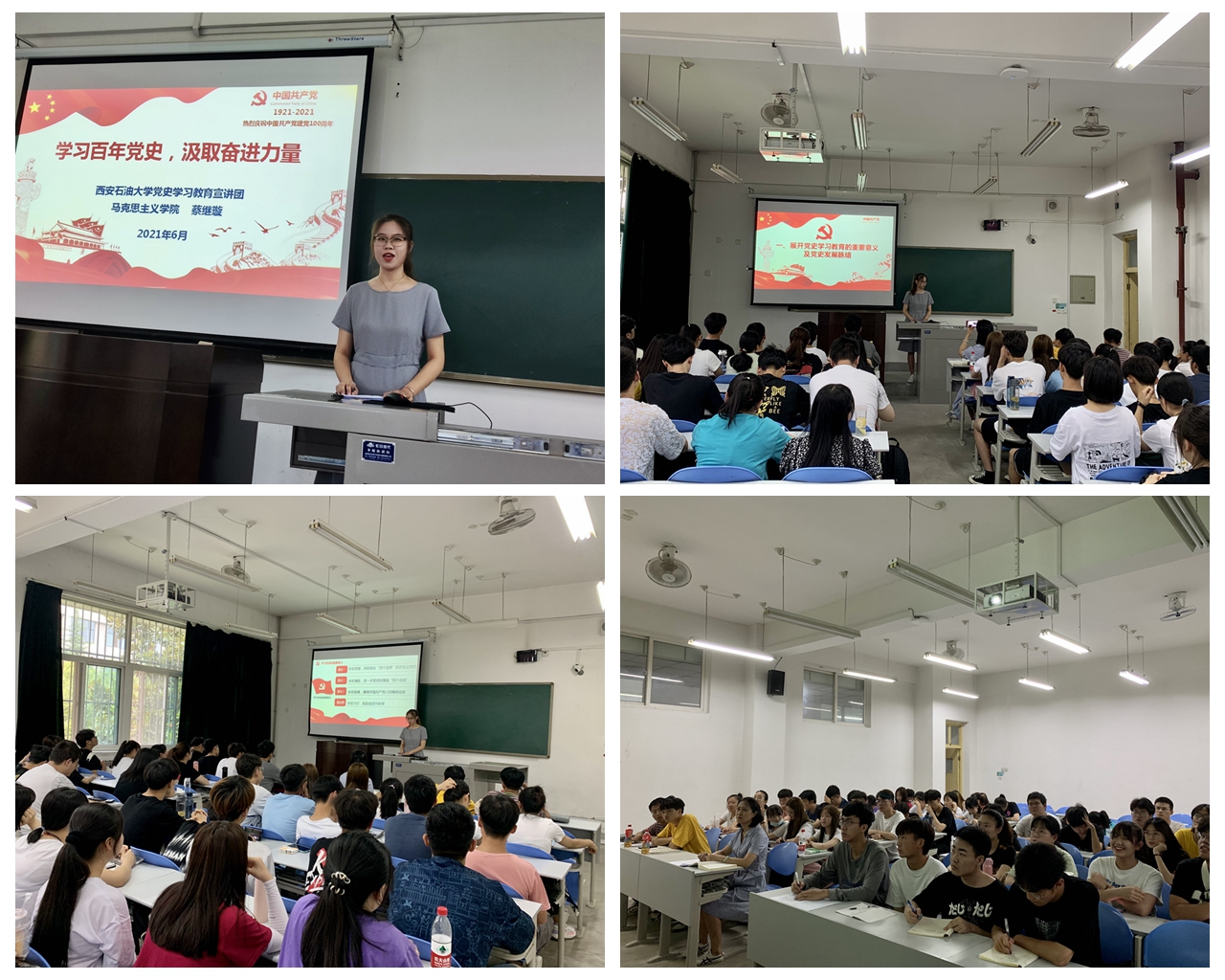 為深入貫徹落實(shí)習(xí)近平總書(shū)記在黨史學(xué)習(xí)教育動(dòng)員大會(huì)上的重要講話精神,引導(dǎo)青年大學(xué)生胸懷“兩個(gè)大局”,緊扣“兩個(gè)一百年”奮斗目標(biāo)。6月2日,西安石油大學(xué)黨史學(xué)習(xí)教育宣講團(tuán)蔡繼璇同學(xué)在鄠邑校區(qū)A117教室開(kāi)展黨史學(xué)習(xí)教育宣講,馬克思主義學(xué)院專職組織員童玲和計(jì)算機(jī)學(xué)院2020級(jí)60余名學(xué)生參加。