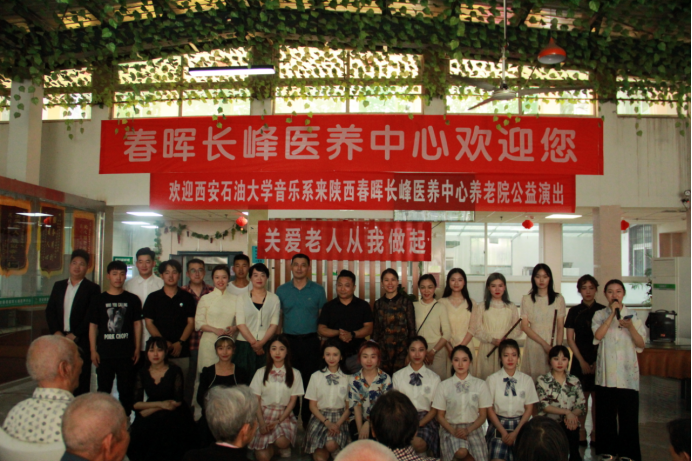 5月28日,音樂系組織學(xué)生黨員赴春暉長(zhǎng)峰醫(yī)養(yǎng)中心養(yǎng)老院進(jìn)行進(jìn)社區(qū)公益演出。本場(chǎng)演出由何云老師精心編排,相關(guān)專業(yè)老師精心指導(dǎo)學(xué)生排練演出節(jié)目,經(jīng)過師生聯(lián)手演繹,為春暉長(zhǎng)峰養(yǎng)老院的老人們呈現(xiàn)了一場(chǎng)繽紛多彩的公益演出。音樂系黨總支書記孟開元,教工黨員代表5人參加了本次公益活動(dòng)。