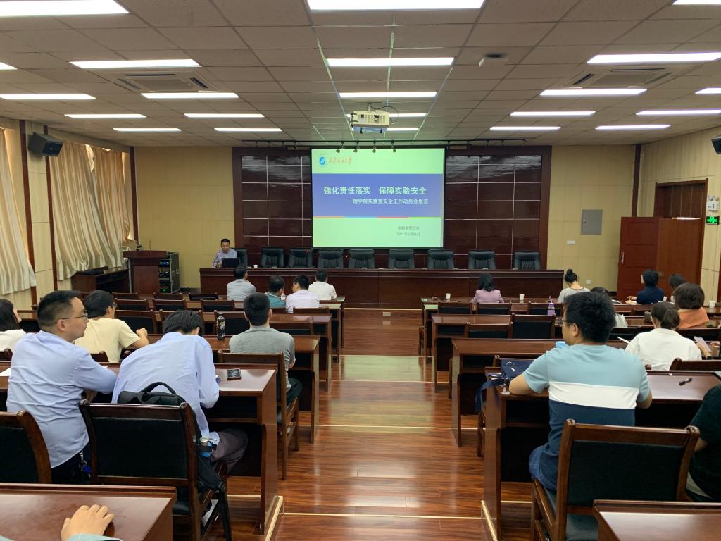 2021年5月26下午4:30,理學院邀請實驗室管理處李慶本副處長進行了“強化責任落實 保障實驗安全”的安全工作動員會。全院100余名教職工參加本次會議,廖敏書記主持會議。
