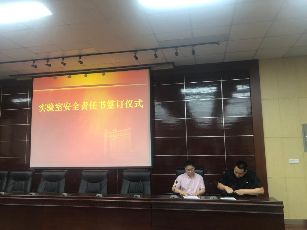 會議第一階段進(jìn)行實驗室安全檢查動員及部署。首先由實驗管理處副處長李慶本傳達(dá)了教育部和陜西省教育廳《關(guān)于組織開展2021年度高等學(xué)校實驗室安全檢查工作的通知》,李慶本副處長從近年來國內(nèi)影響重大的化工類安全事故出發(fā),指出做好實驗室安全工作應(yīng)該作為學(xué)院每位教師的基礎(chǔ)性和日常性工作,并對照中省有關(guān)實驗室安全文件精神要求,指出學(xué)院實驗室目前存在的管理漏洞和安全問題,希望各實驗室負(fù)責(zé)老師認(rèn)清責(zé)任,狠抓落實,把實驗室安全事故扼殺在萌芽狀態(tài)。李善建副院長介紹了學(xué)院落實實驗室安全工作的具體措施:一是高度重視實驗室安全工作,切實加強(qiáng)組織領(lǐng)導(dǎo);二是簽訂安全責(zé)任書、逐級分層落實安全責(zé)任;三是嚴(yán)格落實實驗室安全準(zhǔn)入制度,確保實驗室安全運(yùn)行;四是認(rèn)真開展自查自糾,扎實做好排查整改工作;五是強(qiáng)化制度執(zhí)行,嚴(yán)肅責(zé)任追究。會上,由現(xiàn)代分析檢測中心主任賈新剛老師和化學(xué)化工實驗教學(xué)中心主任張新強(qiáng)老師分別代表科研實驗室和教學(xué)實驗室與分管領(lǐng)導(dǎo)簽訂了《化學(xué)化工學(xué)院實驗室安全責(zé)任書》。