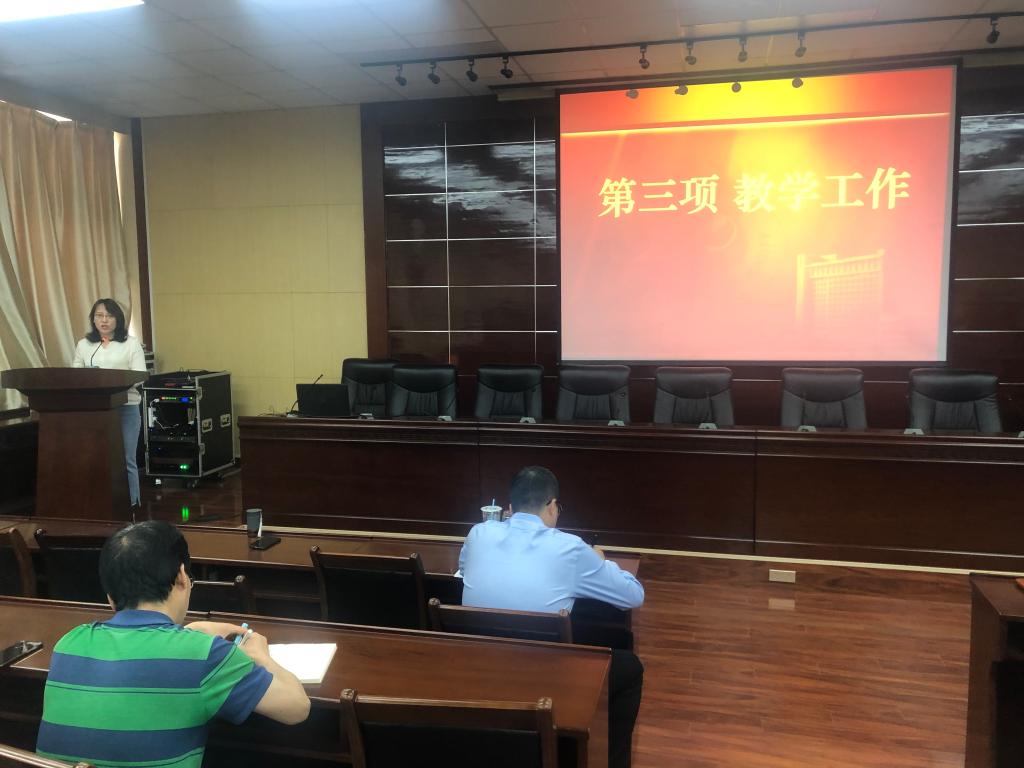 會議第二階段進(jìn)行專項工作匯報。李善建副院長從研究生培養(yǎng)方案修訂、課程建設(shè)、教改項目、教材建設(shè)及培養(yǎng)環(huán)節(jié)方面介紹了研究生教育工作。蘇碧云副院長介紹了學(xué)院一流專業(yè)及一流課程建設(shè)情況。祁帆副書記介紹了2017級本科生和2018級研究生就業(yè)現(xiàn)狀及下一步的就業(yè)工作安排。同時,作為工會主席,祁帆副書記還介紹了學(xué)院教職工合唱比賽的進(jìn)展情況。司馬文龍書記對課程思政的有關(guān)情況進(jìn)行了部署安排,希望各位老師在授課的過程中有機(jī)融入課程思政的內(nèi)容,構(gòu)建全過程、全方位育人的思政工作新格局。