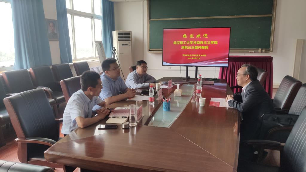 5月21日下午,武漢理工大學(xué)馬克思主義學(xué)院副院長王盛開教授來我院考察交流。馬克思主義學(xué)院黨總支書記張偉,院長張海濤,副書記、副院長董春詩與來訪王盛開教授在雁塔校區(qū)1號教學(xué)樓818會議室進行了交流座談。