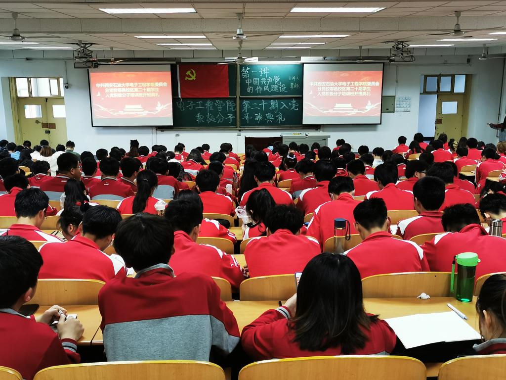 429日晚1900,電子工程學(xué)院第二十期入黨積極分子培訓(xùn)班開(kāi)班典禮暨黨課第一講在鄠邑校區(qū)A134教室舉行,活動(dòng)由專(zhuān)職組織員胡思文主持,校黨委巡察辦公室主任覃彪、電子工程學(xué)院黨委副書(shū)記畢軼慧、學(xué)院團(tuán)委書(shū)記、學(xué)生管理辦公室主任周毅華、全體輔導(dǎo)員以及學(xué)院本科生、研究生共244名學(xué)員參加。
