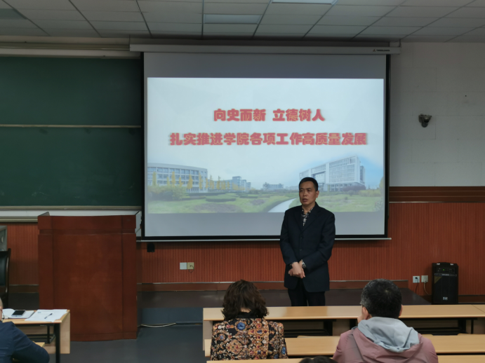 會上,學(xué)院黨委書記王宏衛(wèi)以“向史而新,立德樹人,扎實推進(jìn)學(xué)院各項工作高質(zhì)量發(fā)展”為題,為全體教工黨員講授專題黨課。他緊緊圍繞“為什么學(xué)”、“學(xué)什么”、“怎樣學(xué)”和“怎么干”等四個問題,對深入學(xué)習(xí)貫徹習(xí)近平總書記在黨史學(xué)習(xí)教育動員大會上的重要講話精神進(jìn)行了系統(tǒng)闡述。他強調(diào),全體黨員要進(jìn)一步提高思想認(rèn)識,充分認(rèn)識開展黨史學(xué)習(xí)教育的重大意義,深刻理解“為什么學(xué)”,切實增強政治自覺、思想自覺和行動自覺;要進(jìn)一步明確目標(biāo)任務(wù),聚焦具體目標(biāo)要求,深刻理解“學(xué)什么”,切實增強學(xué)習(xí)教育的系統(tǒng)性和針對性;要進(jìn)一步強化實踐要求,準(zhǔn)確把握活動載體,立足工作實際,突出“學(xué)、思、踐、悟”,切實把學(xué)習(xí)教育成果轉(zhuǎn)化為推動發(fā)展的強大動力和實際成效;要進(jìn)一步提高政治站位,立足實際、守正創(chuàng)新,精心抓好組織實施,高標(biāo)準(zhǔn)高質(zhì)量完成學(xué)習(xí)教育各項任務(wù)。