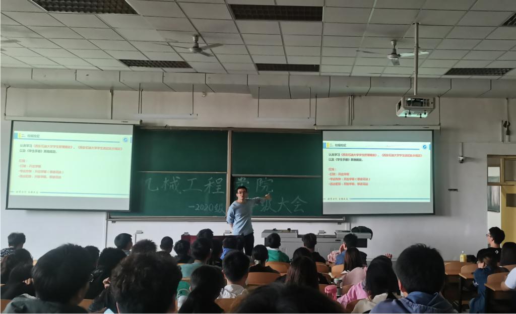 根據(jù)學(xué)校進(jìn)一步嚴(yán)肅校規(guī)校紀(jì)加強(qiáng)學(xué)生教育管理專項(xiàng)教育的統(tǒng)一安排,機(jī)械工程學(xué)院于4月19日起陸續(xù)召開學(xué)生工作例會、線上線下結(jié)合的各級年級大會、各班班會、學(xué)生干部會議,認(rèn)真學(xué)習(xí)《學(xué)生手冊》中《西安石油大學(xué)學(xué)生管理規(guī)定》、《西安石油大學(xué)學(xué)生違紀(jì)處分規(guī)定》等學(xué)生管理內(nèi)容,并進(jìn)行校運(yùn)動會、“五一”假期等安全紀(jì)律教育,同時安排各年級的重要事項(xiàng)。各年級輔導(dǎo)員主持相關(guān)會議。