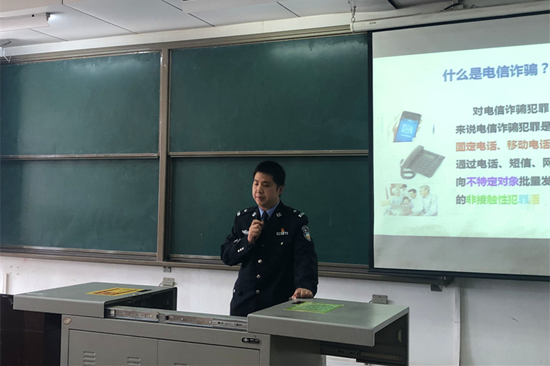 為進一步增強學生安全意識,提高學生安全防范能力,428日下午,石油工程學院“石工論壇”第五十二講“防范電信詐騙、筑牢安全防線”專題講座在鄠邑校區(qū)A139順利開展。西安市公安局鄠邑分局劉海警官和鄠邑區(qū)灃京路派出所馬凱警官應(yīng)邀為廣大學生做了安全知識培訓。本次講座由我院2019級輔導員李剛老師主持,2020級輔導員祖力皮亞及200余名學生參加了此次活動。